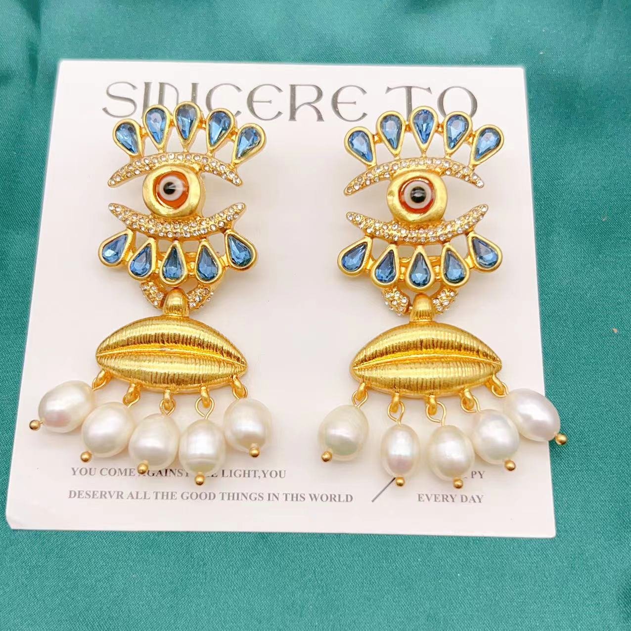 Vintage Diamond Eyes And Lips Imitation Pearl Earrings