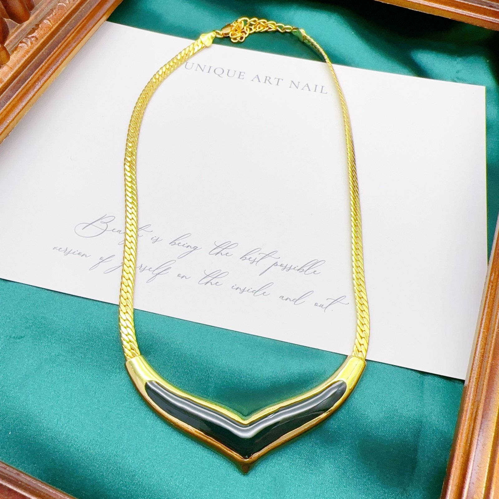 Vintage Electroplated Real Gold Black Gold Oiled V-Shaped Whale Tail Necklace quantity