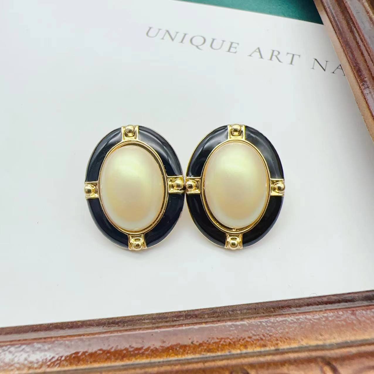 Vintage Enamel Imitation Aurora Pearl Inlaid Earrings quantity
