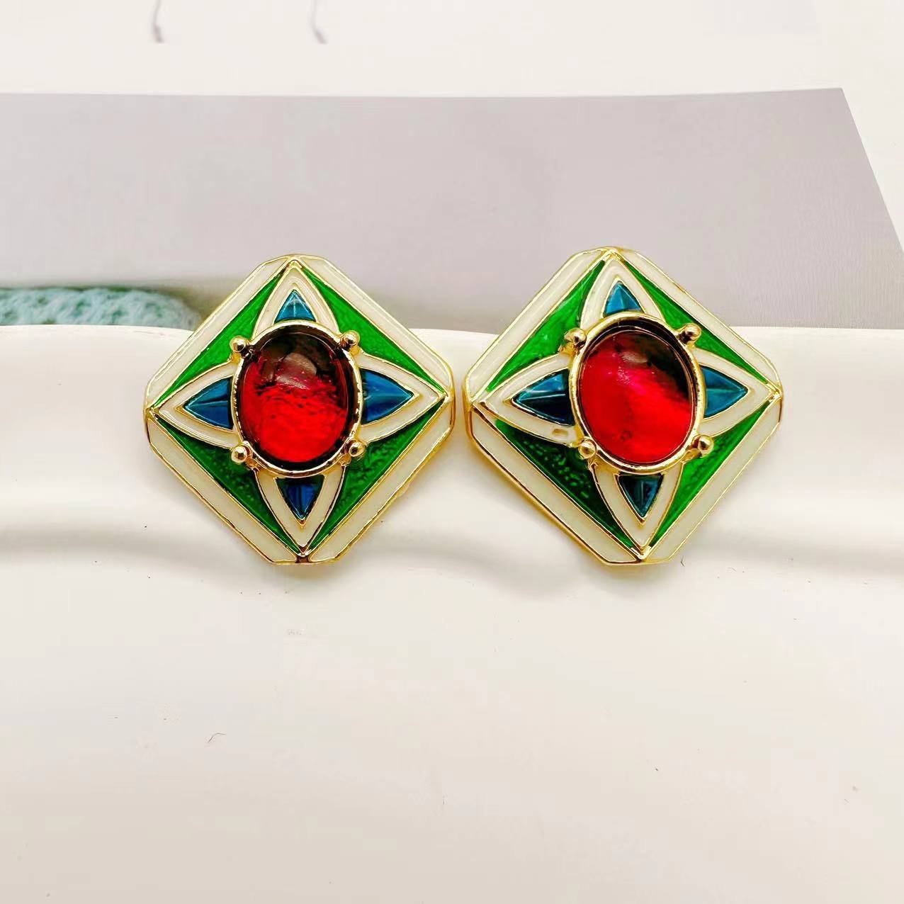Vintage Enamel Red Zircon Inlaid Earrings quantity