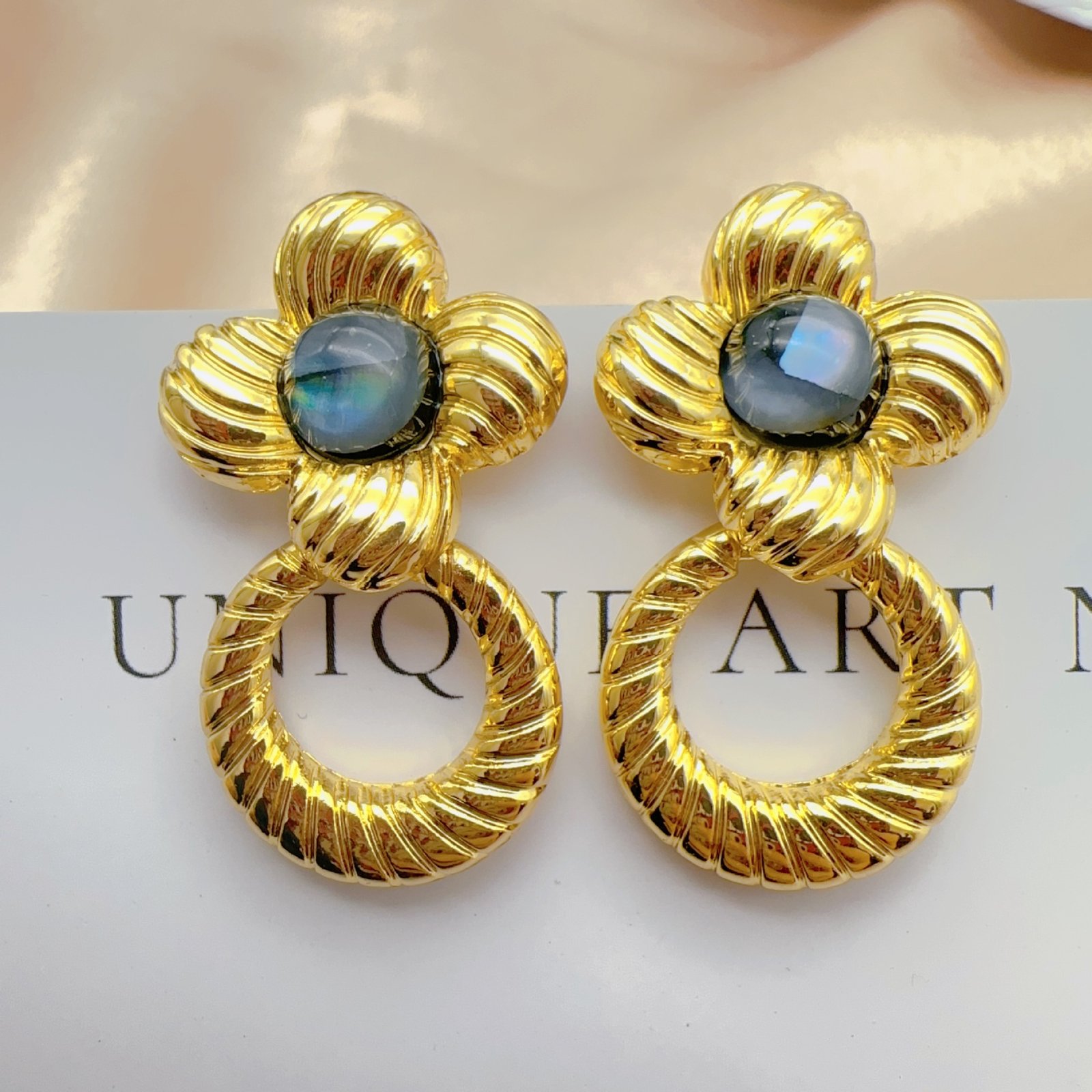 Vintage Flower Ring Inlaid Gem Gold Earrings quantity