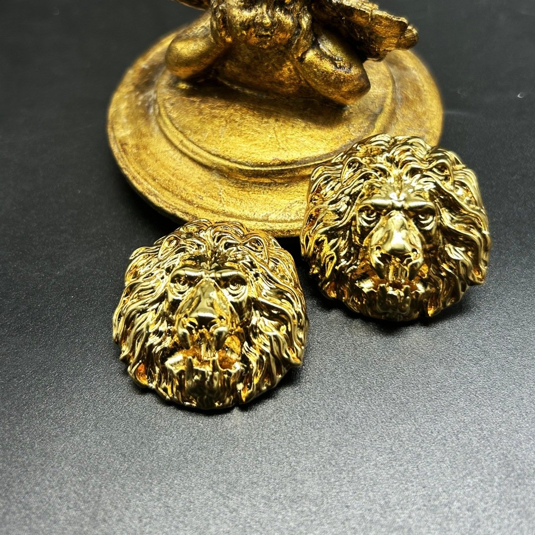 18K Gold Plated Vintage Gold Lion Head Earrings With Three-Dimensional Relief quantity