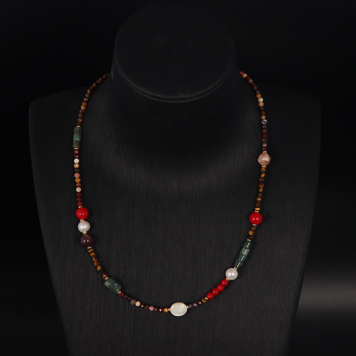 Natural Agate Pearl Beaded Gold-Plated Necklace