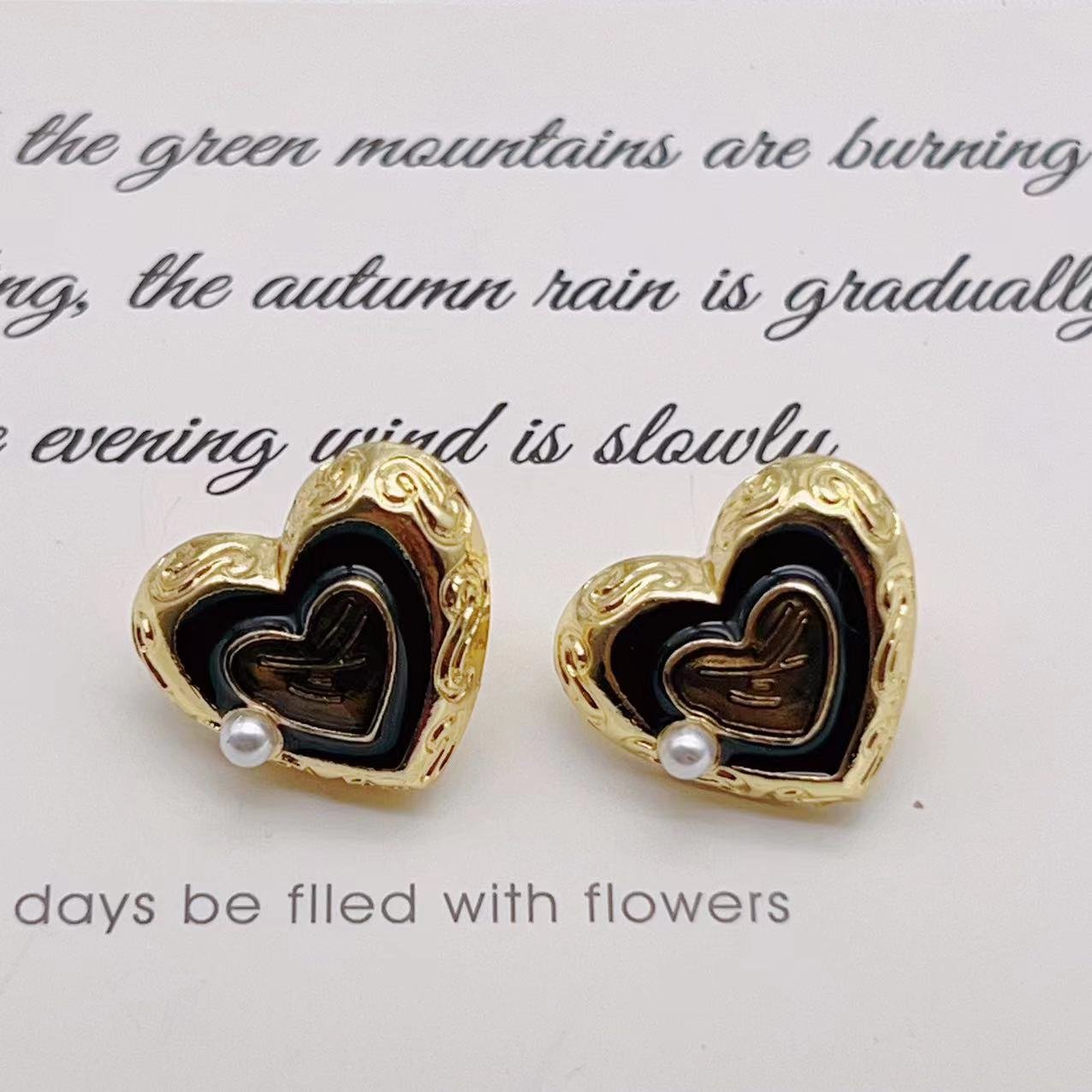 Vintage Gradient Enamel Texture Heart Earrings, Same Style As Pinellia Ternata Bas-Relief quantity