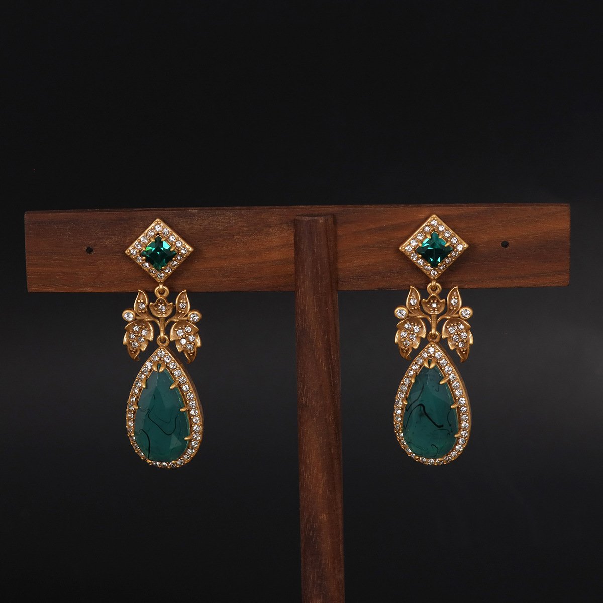 18k Gold Plated Vintage Green glaze Inlay Earrings