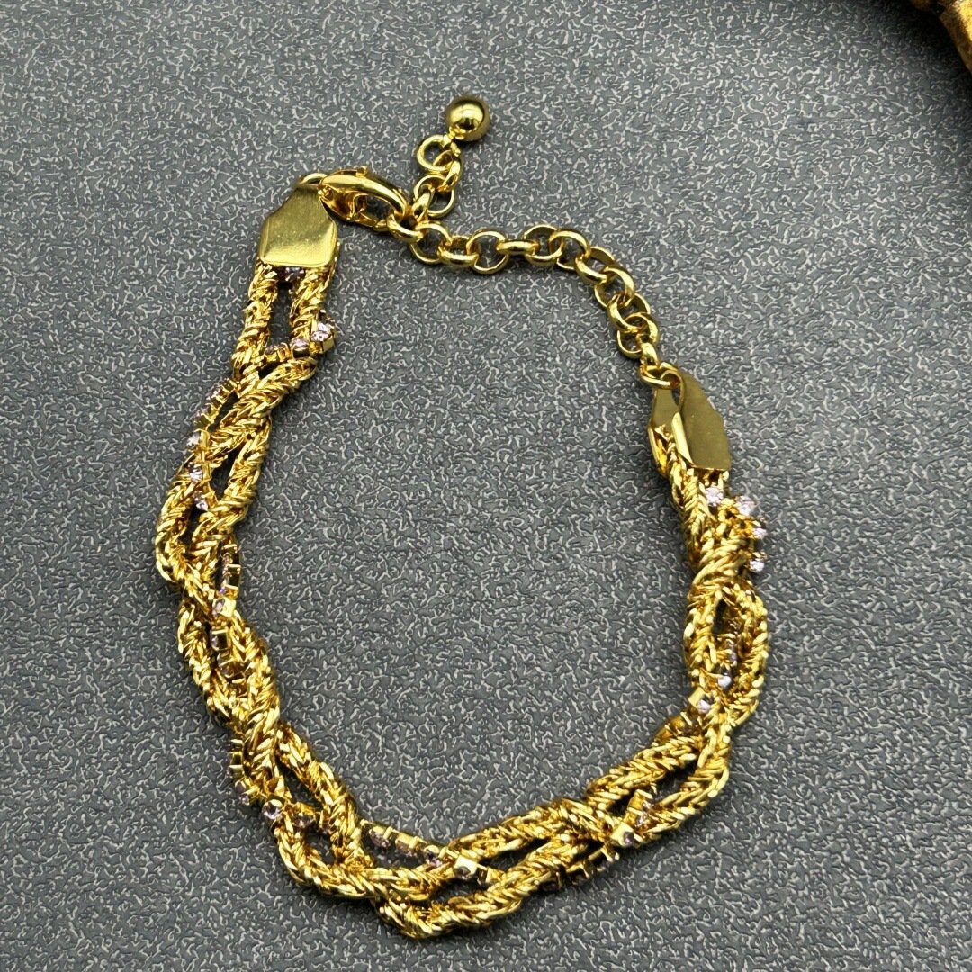 18K Gold Plated Vintage Hand-Made Twisted Gemstone Bracelet Jewelry quantity
