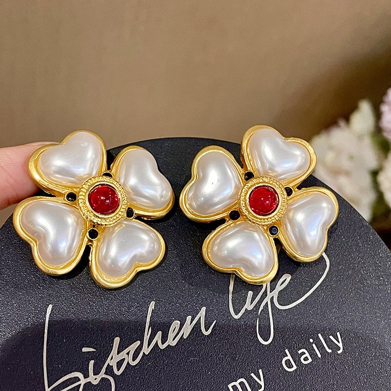 Vintage Heart Pearl Petals Earrings – Sterling Silver Post Part