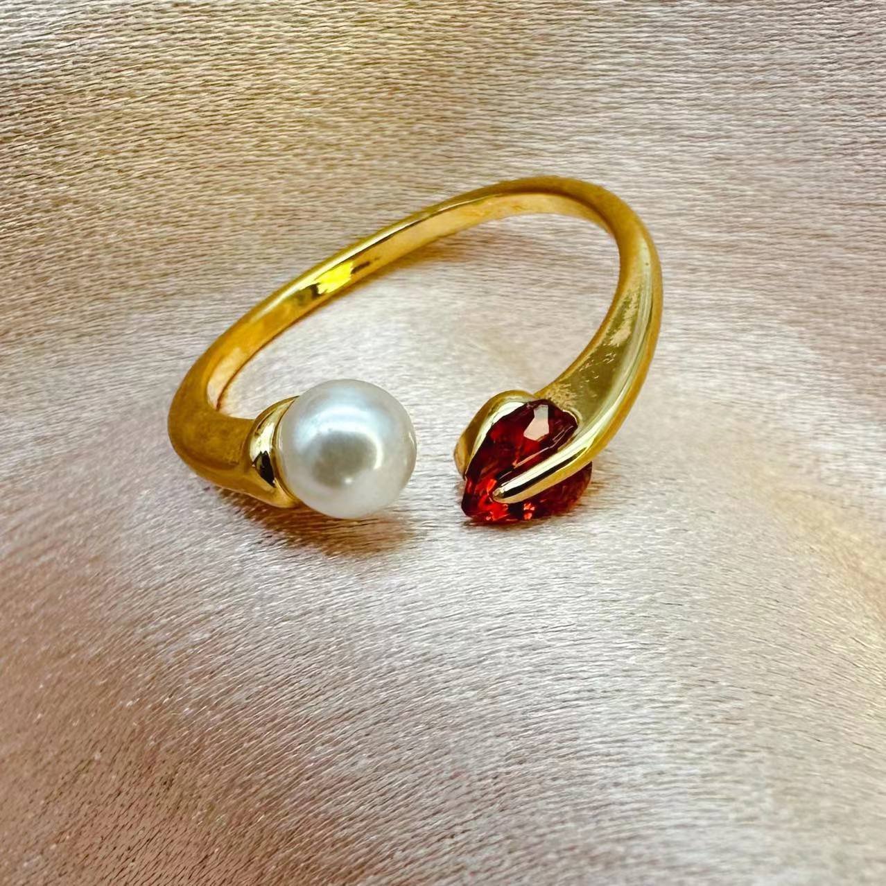 Vintage Heart Ruby ??Inlaid Open Ring Geometric Ring quantity