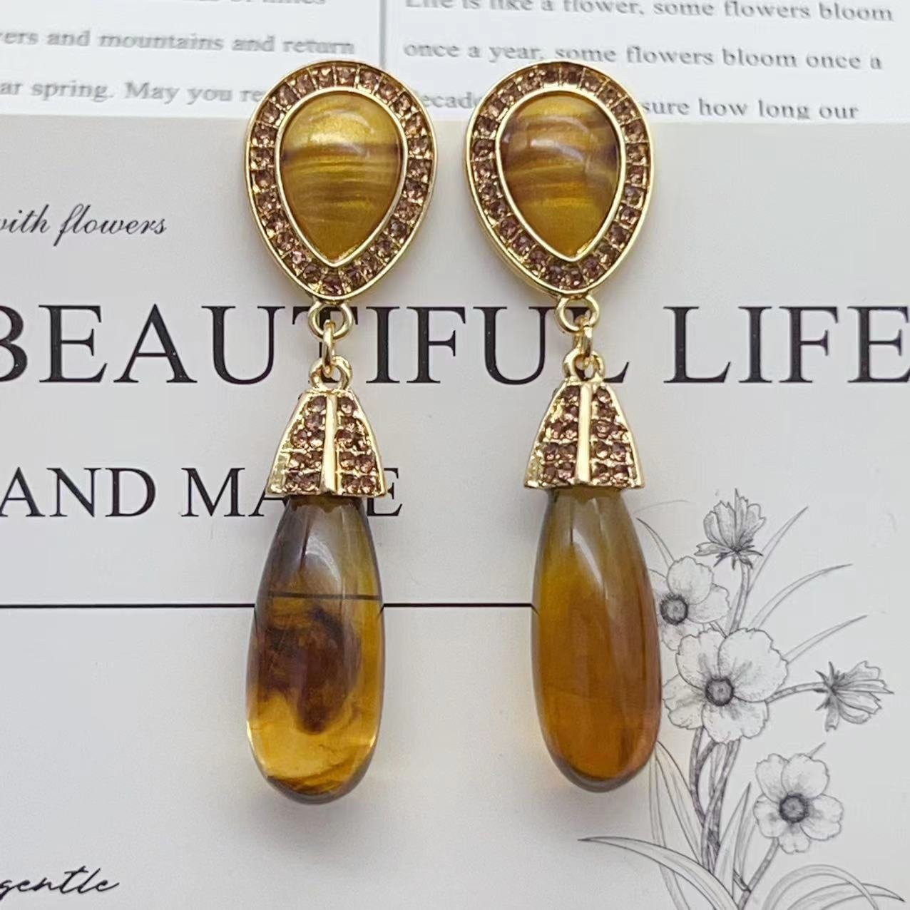 Vintage Imitation Amber Water Drop Glass Earrings quantity