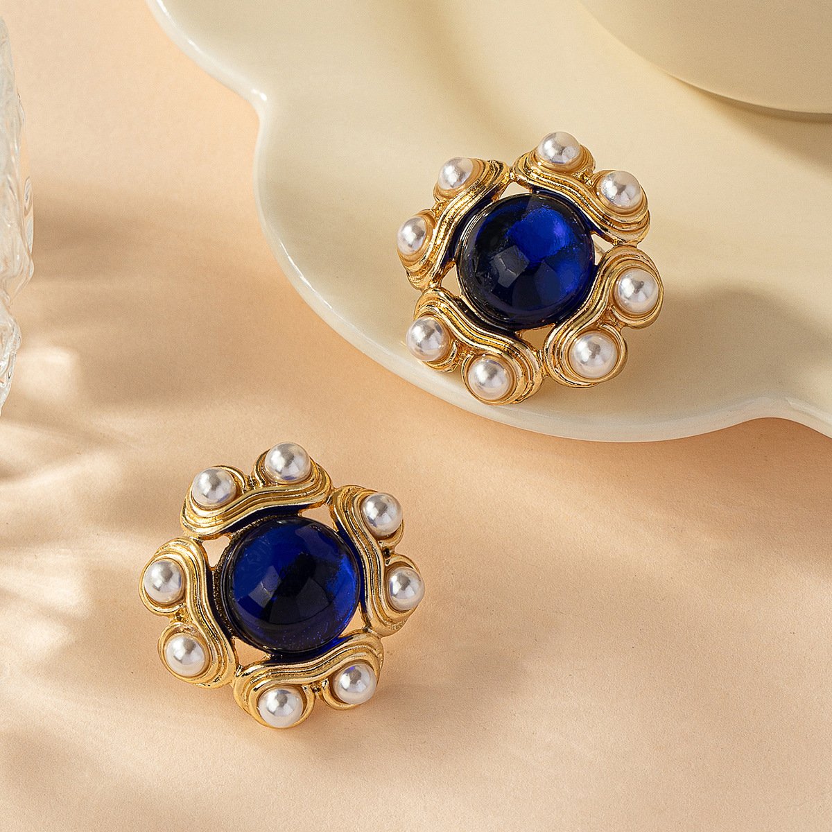 Vintage Imitation Pearl Resin Blue Earrings quantity