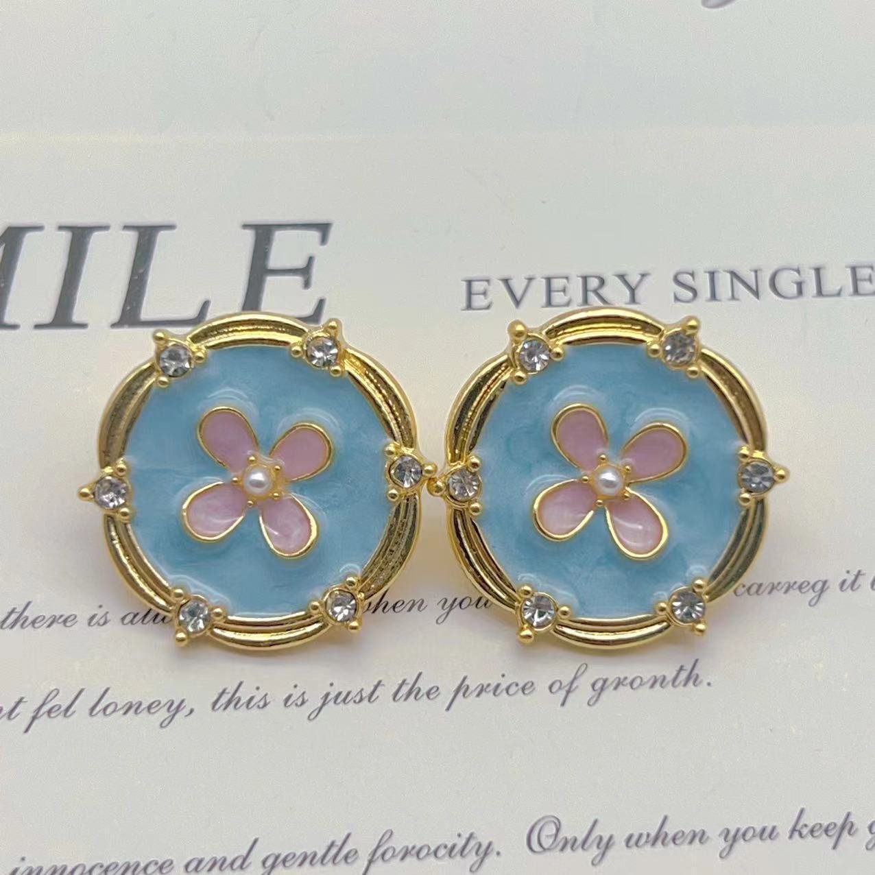 Vintage Light Blue Enamel Glaze Flower Earrings quantity