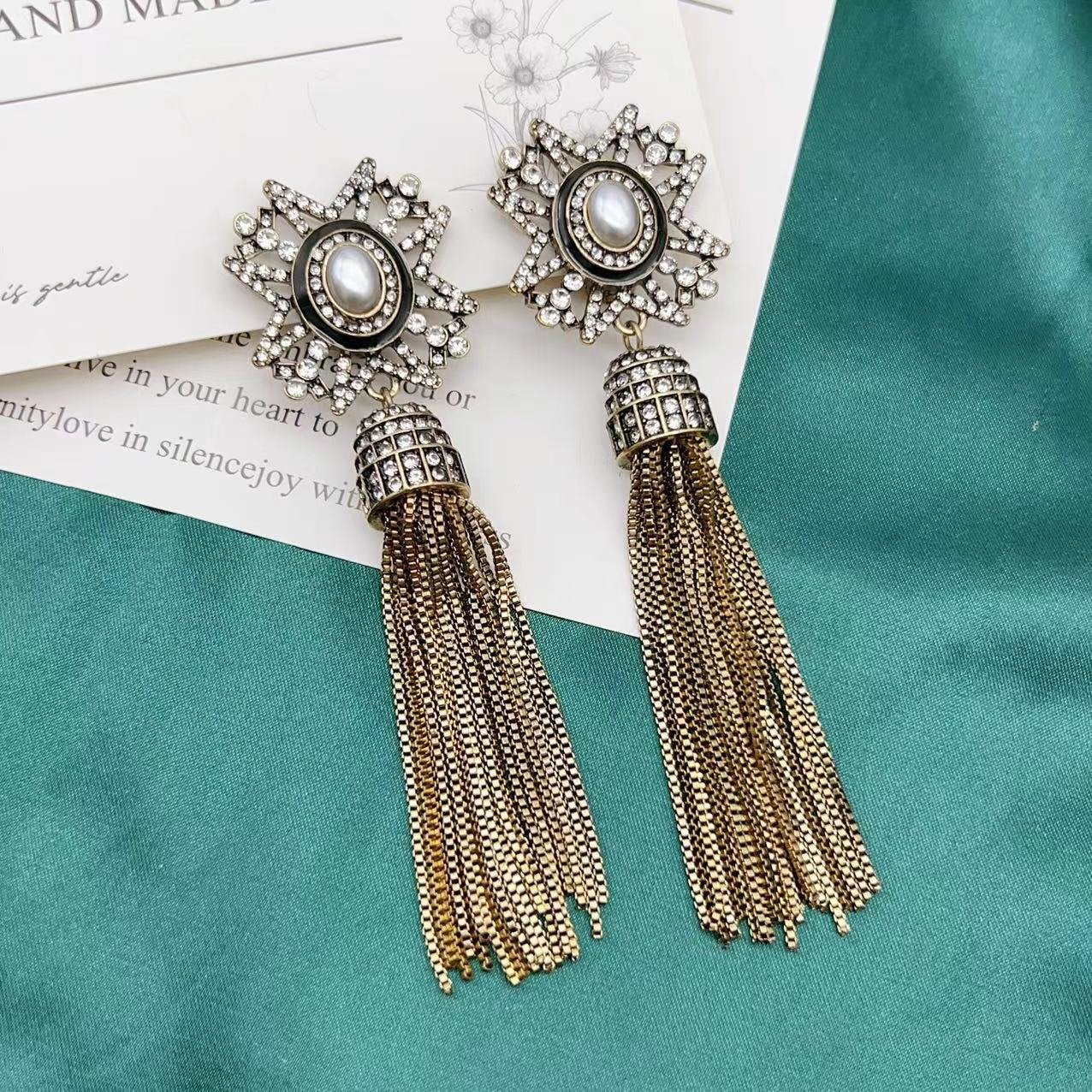 Vintage Long Earrings, Elegantly Inlaid With Diamonds quantity