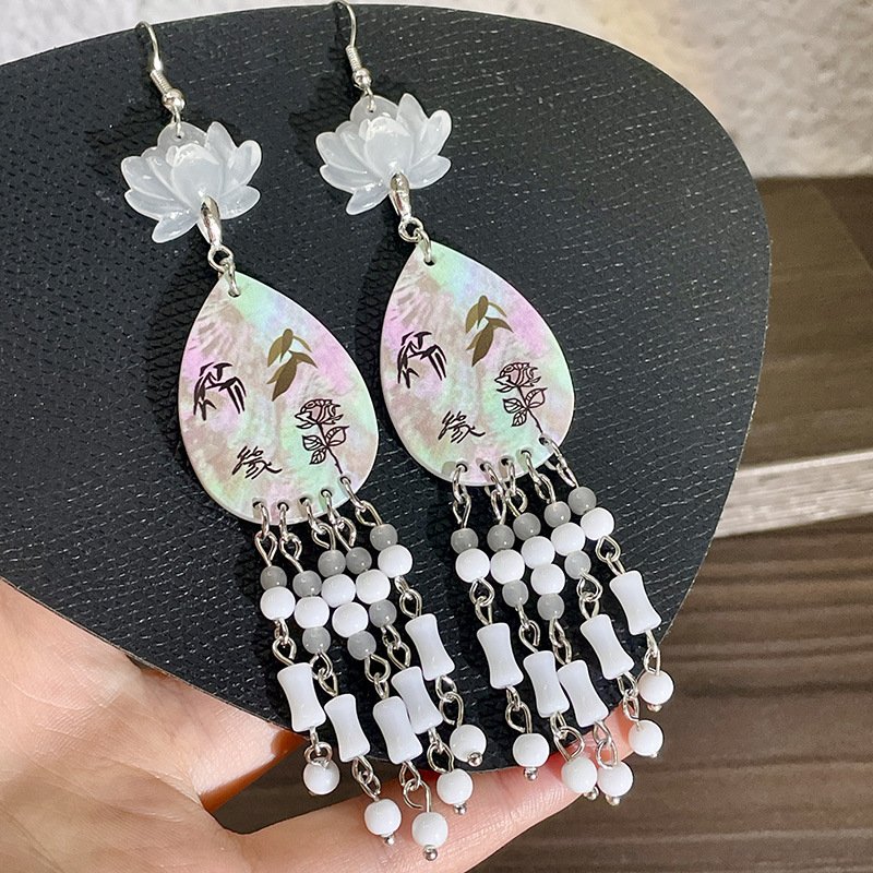 Vintage Lotus Water Drop Shell Tassels Earrings –