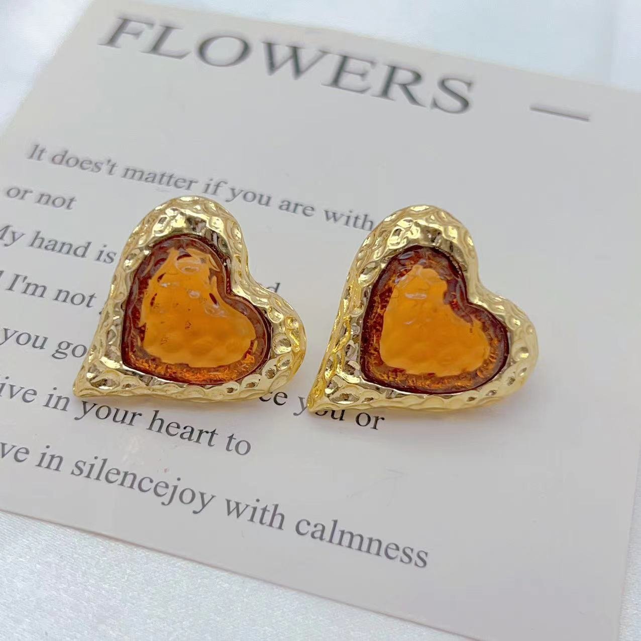 Vintage Orange Lava Heart Glass Texture Earrings quantity
