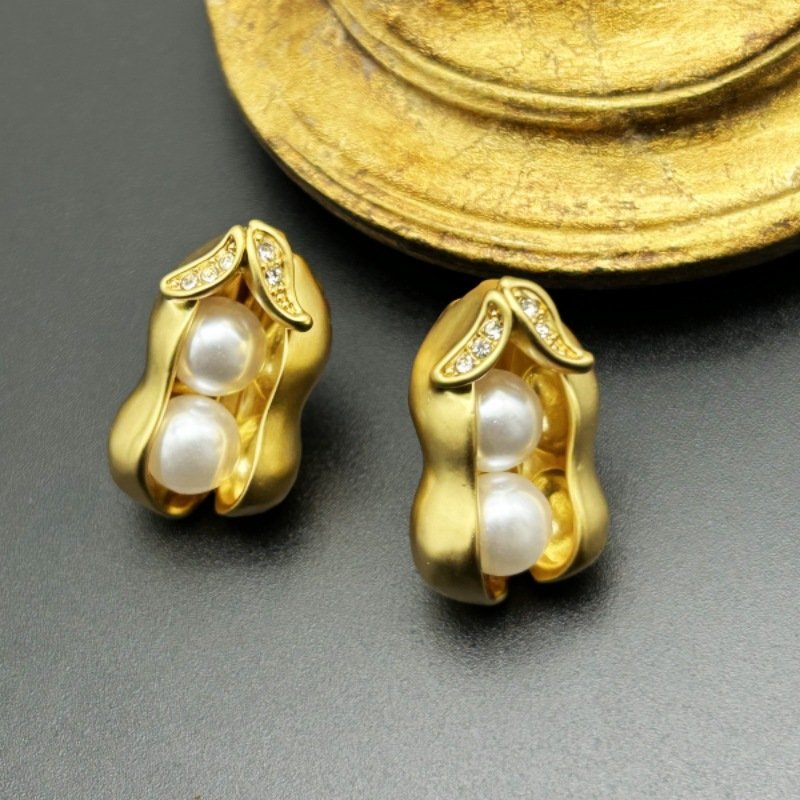18K Gold Plated Vintage Pearl Peanut Earrings