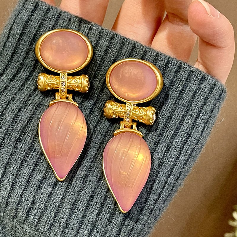 Vintage Pink Drop Large Earrings – Sterling Silver Post Part
