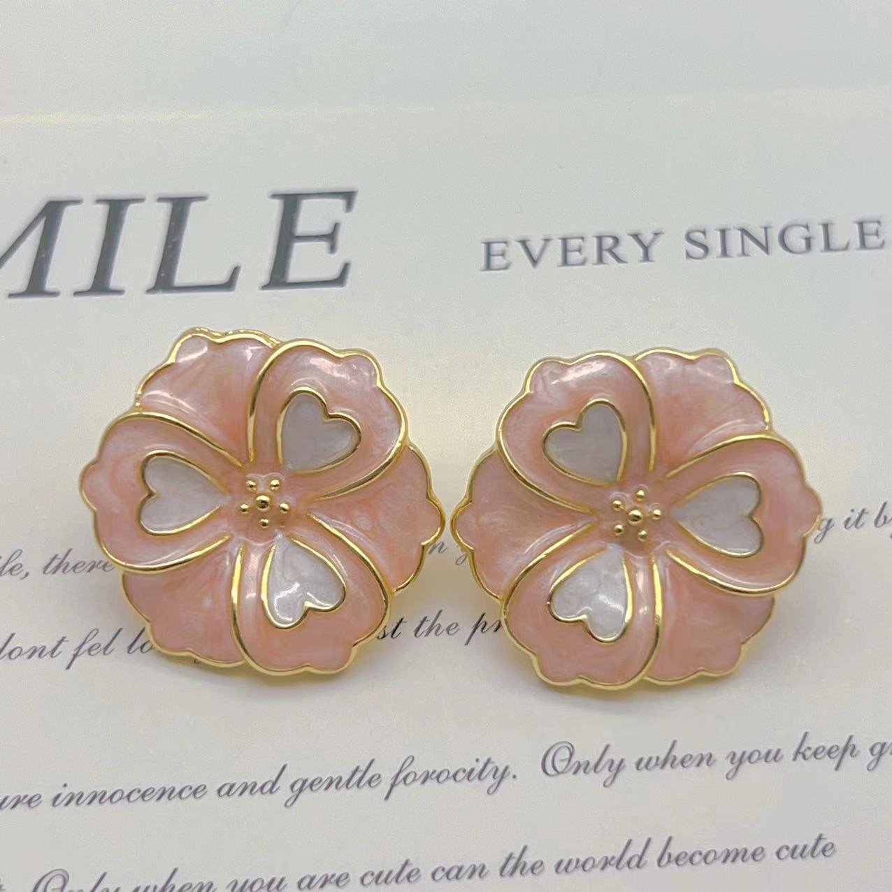 Vintage Pink Enamel Flower Earrings quantity