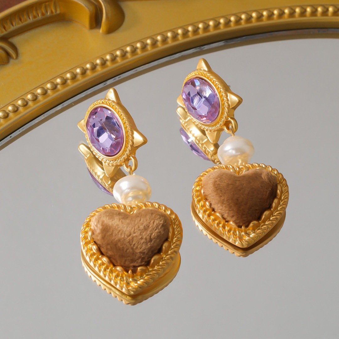 18K Gold Plated Vintage Purple Heart Earrings quantity