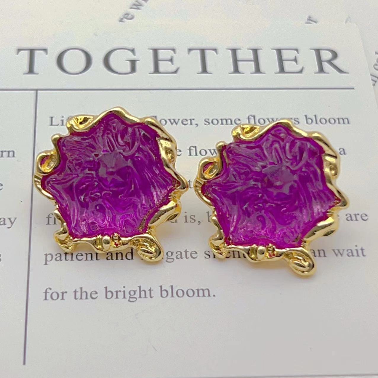 Vintage Purple Resin Lava Irregular Earrings quantity