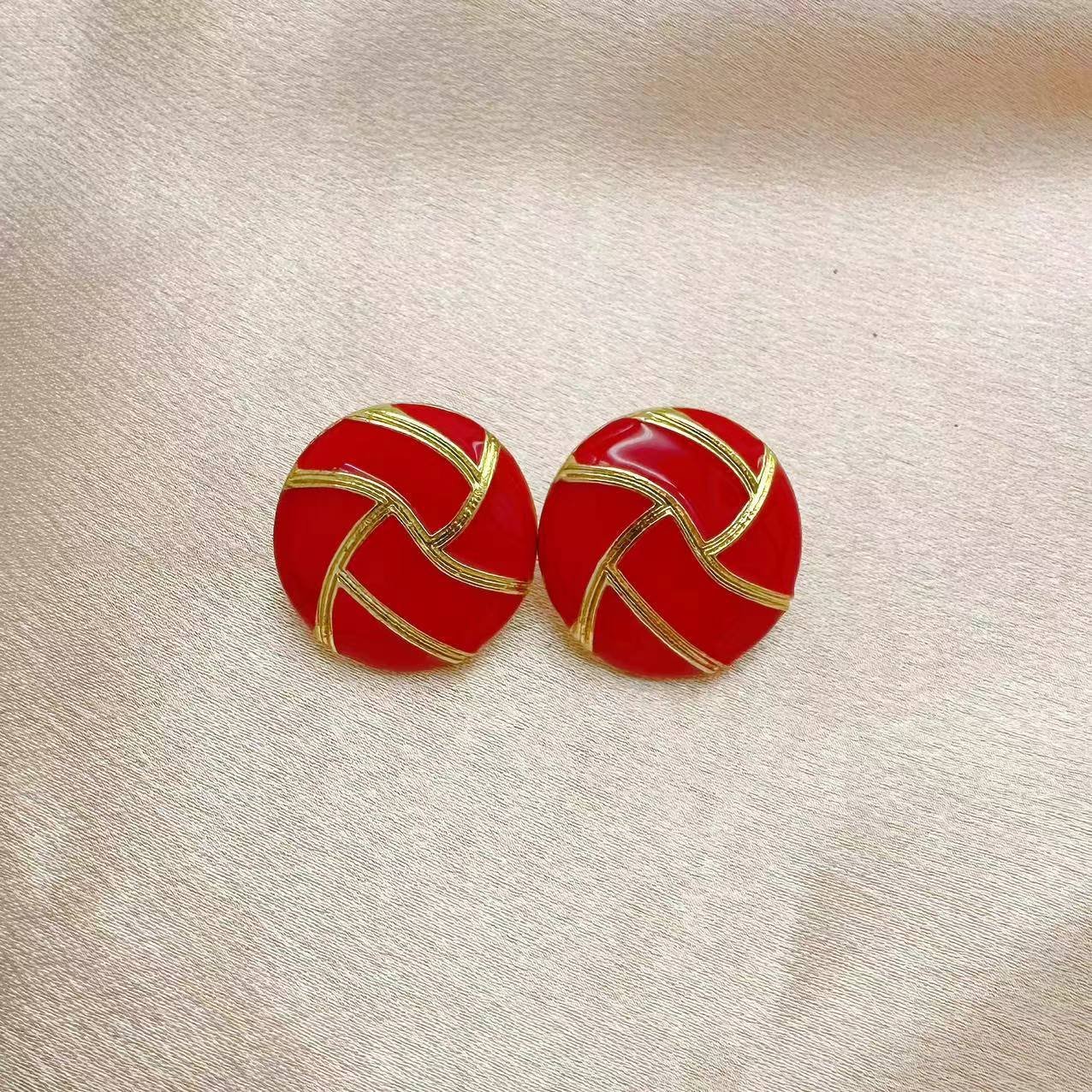 Vintage Red Enamel Geometric Patterned Earrings quantity