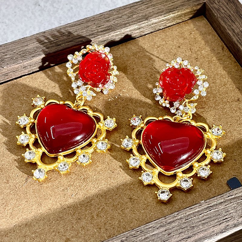 Vintage Red Heart Earrings - Sterling Silver Post Part quantity