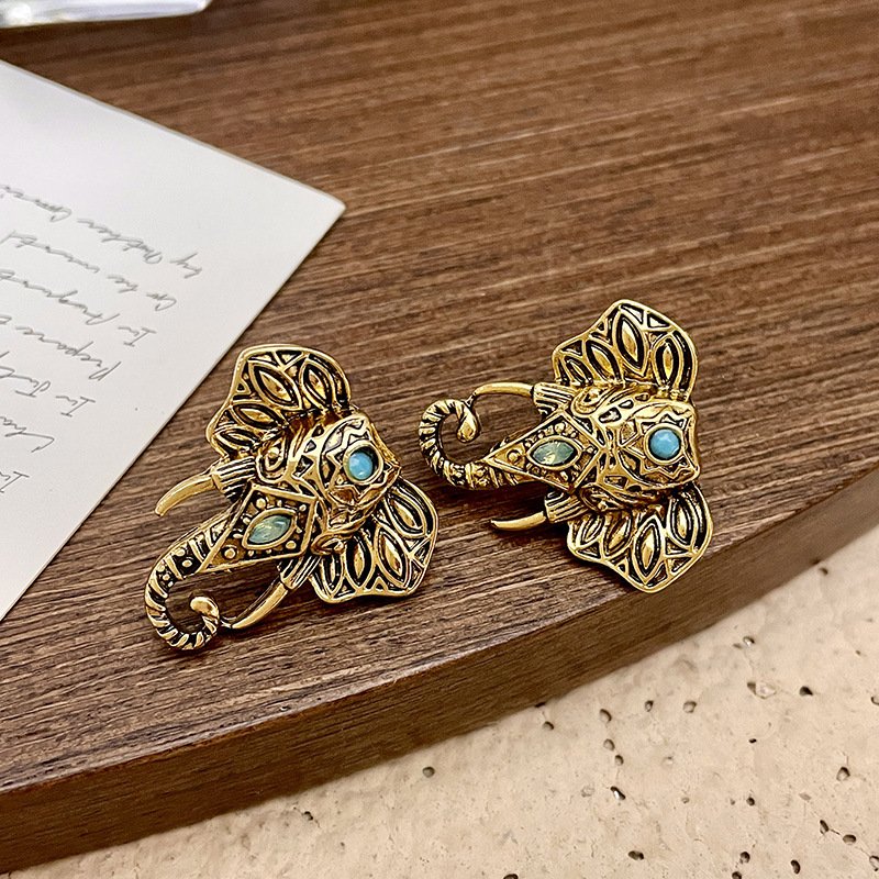 Vintage Retro Blue Diamond Elephant Earrings – Sterling Silver Post Part