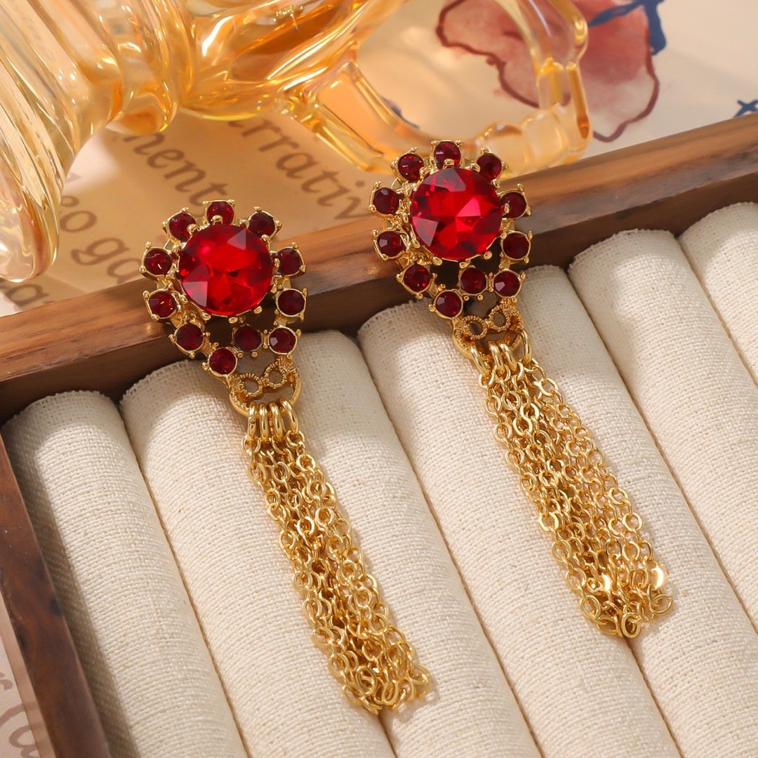 18K Gold Plated Vintage Tassel Gemstone Earrings Red Earrings