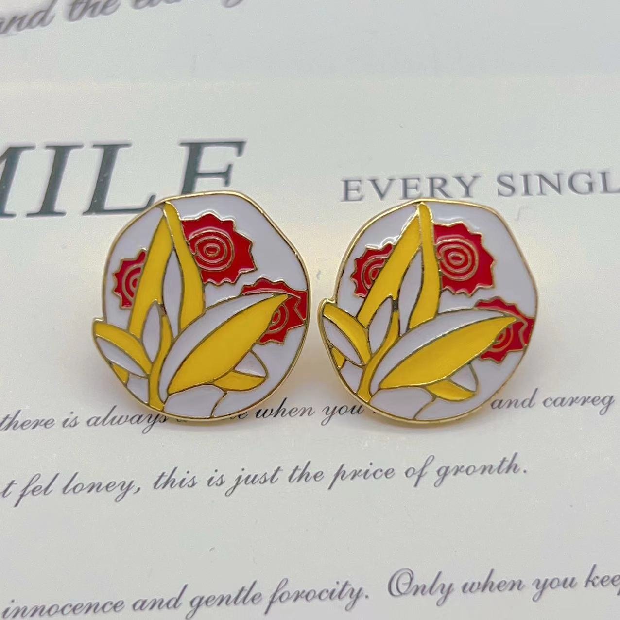 Vintage White Enamel Flower Earrings quantity