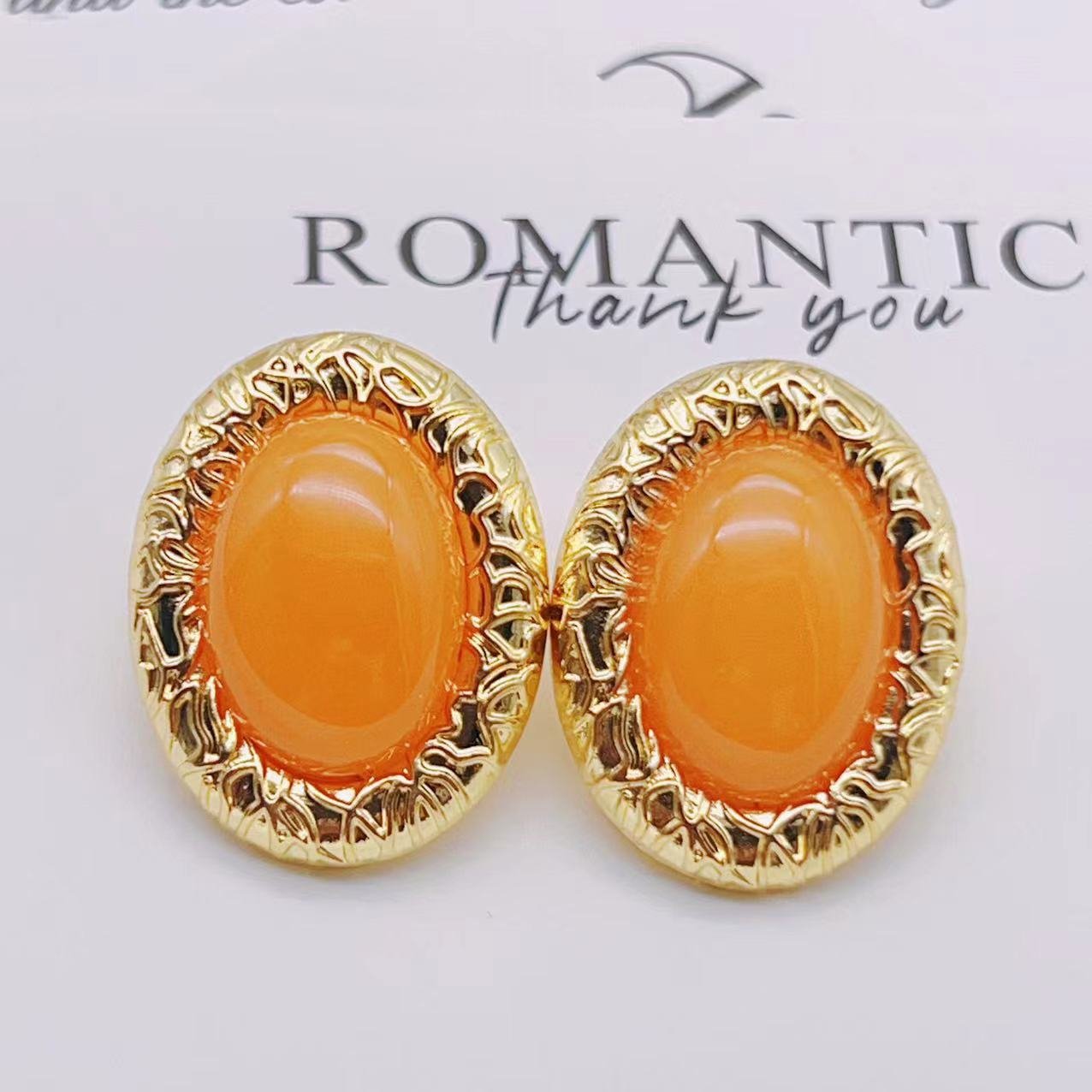 Vintage Yellow Oval Resin Gold Texture Earrings quantity
